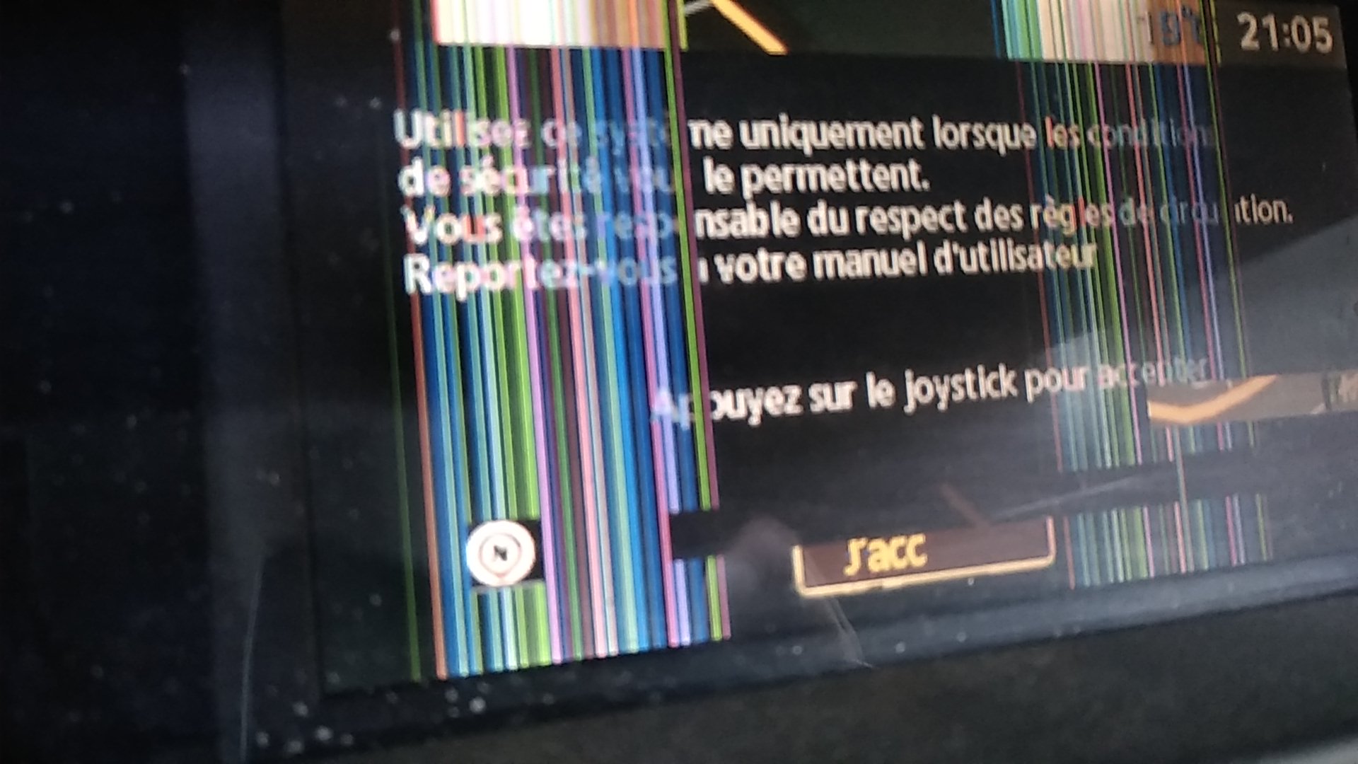 La 1ere fois qu'il y a eu un souci, l’écran a commencé a "clignoter", il s'est figé, plus aucune commande ne fonctionnait (volume etc...) et il s'est éteint.