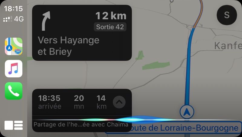 Siri ne prend plus tout l’écran , lorsqu’il est actif, cela est visible seulement sur le bas de l’écran ce qui évite de cacher d’éventuelles instructions de guidage.