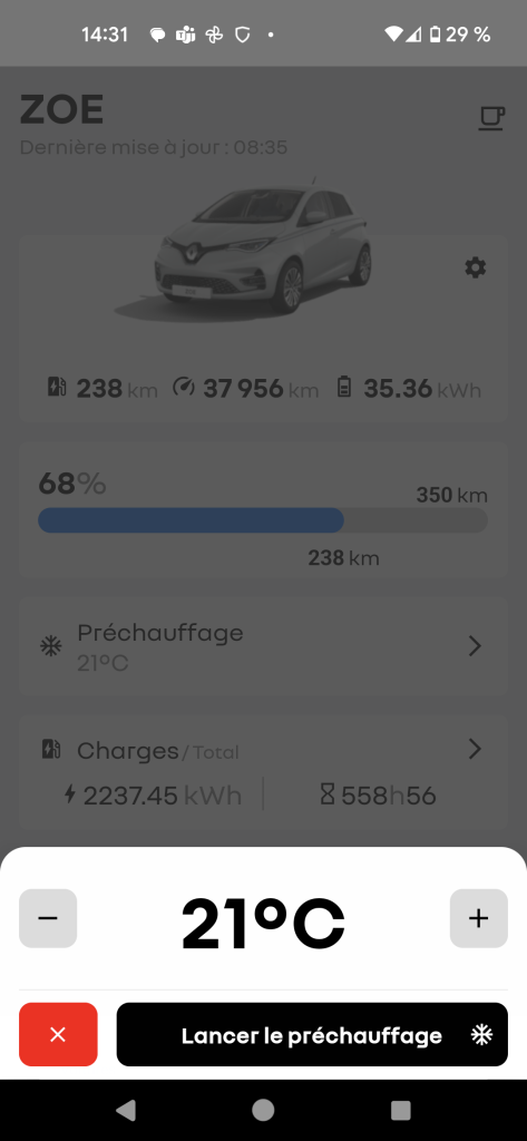 - Possibilité d’activer le pré-conditionnement à distance.